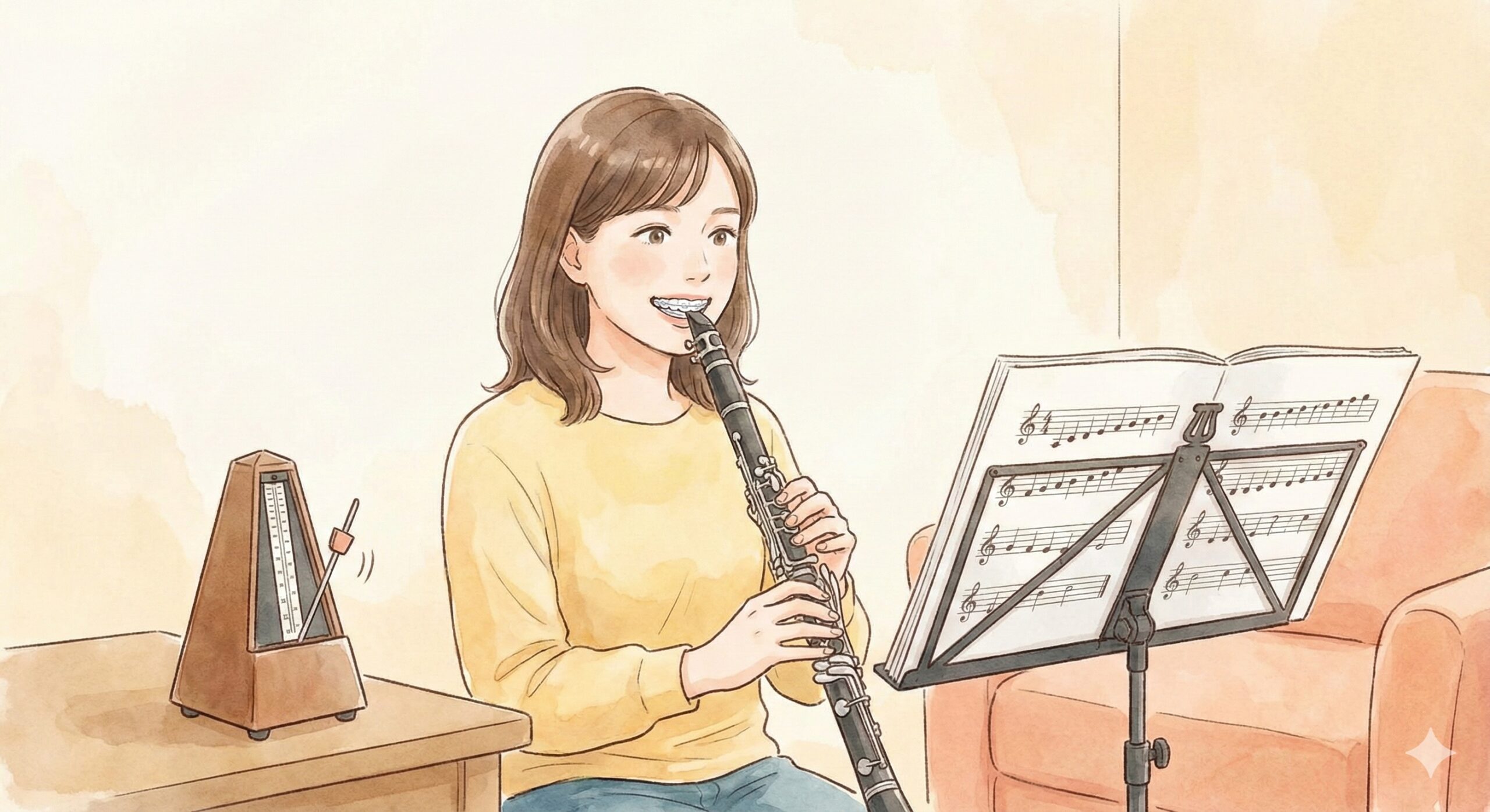 この発音や音程の基本的な練習は特に重要であり、ていねいに練習することで、マウスピース型矯正装置の装着時でも自然な演奏ができます。十分な時間を確保し、忍耐強く継続的に取り組むことが、この過程での成功の鍵です。