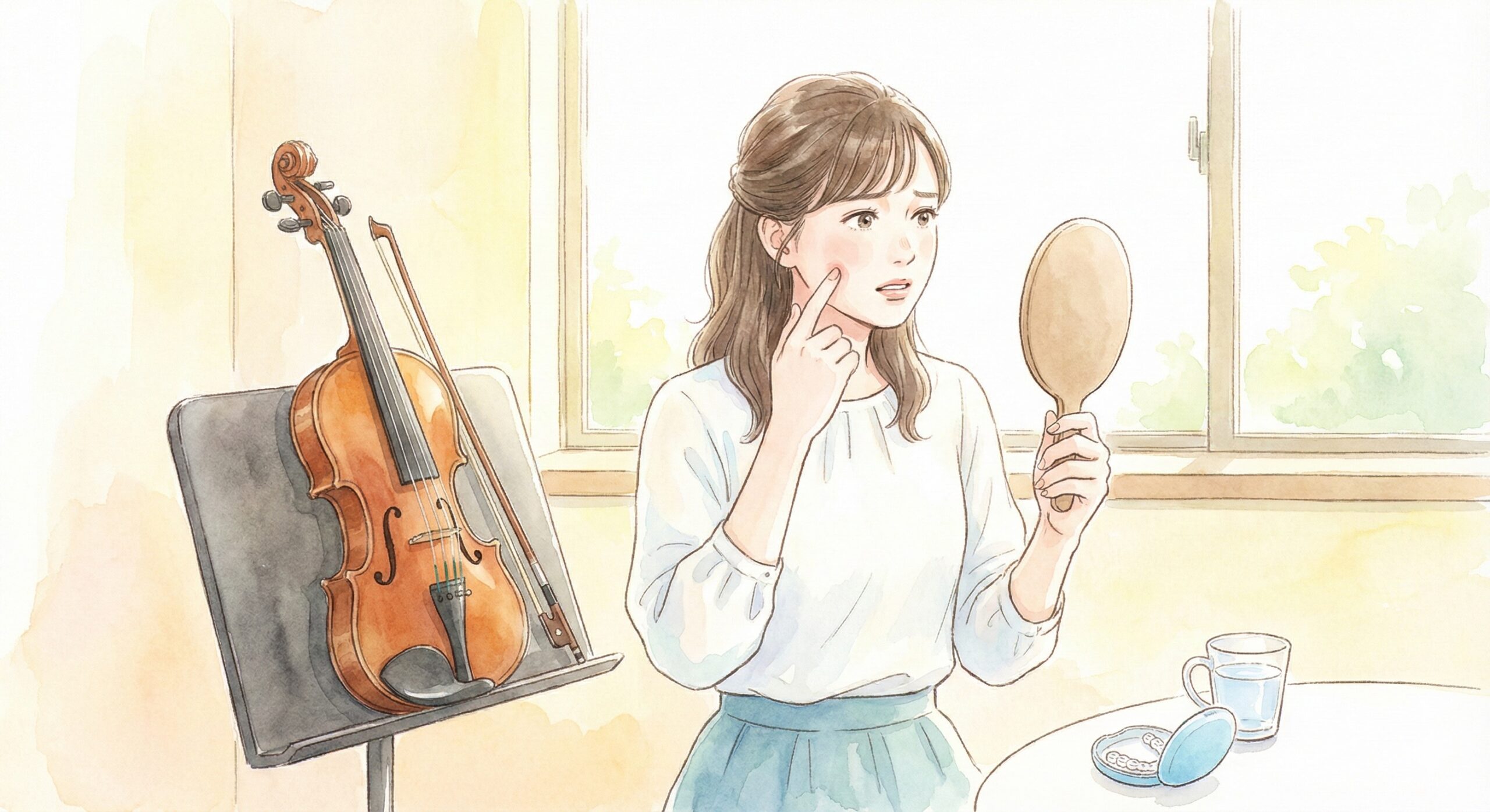 演奏中は、常に自分の体の状態に細心の注意を払う必要があります。このため、定期的なセルフチェックを習慣化することをお勧めします。具体的には、まず痛みや不快感がないかを確認しましょう。口やあご、歯茎などに違和感が、重要なシグナルになります。