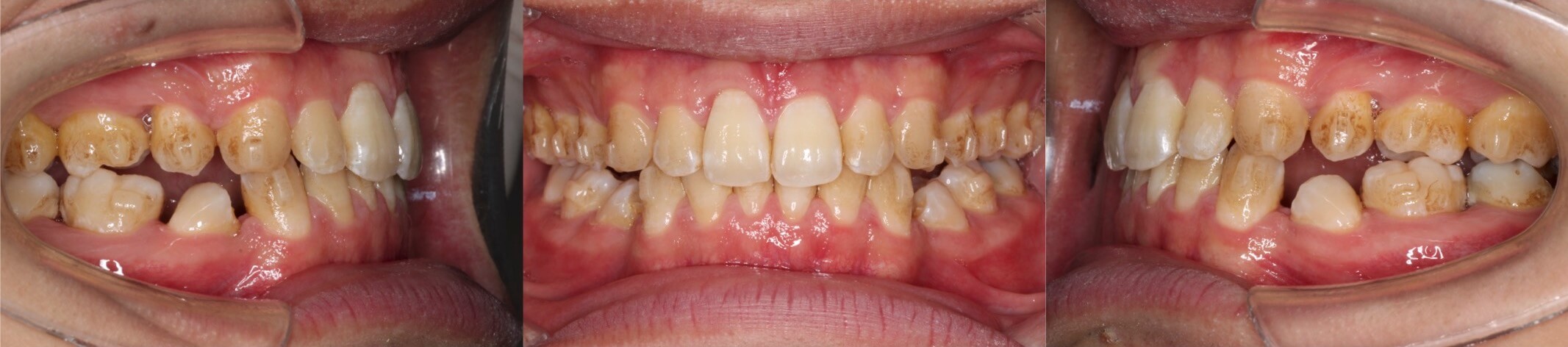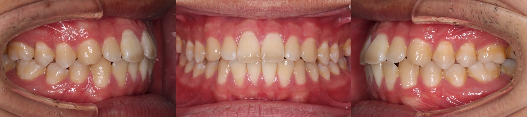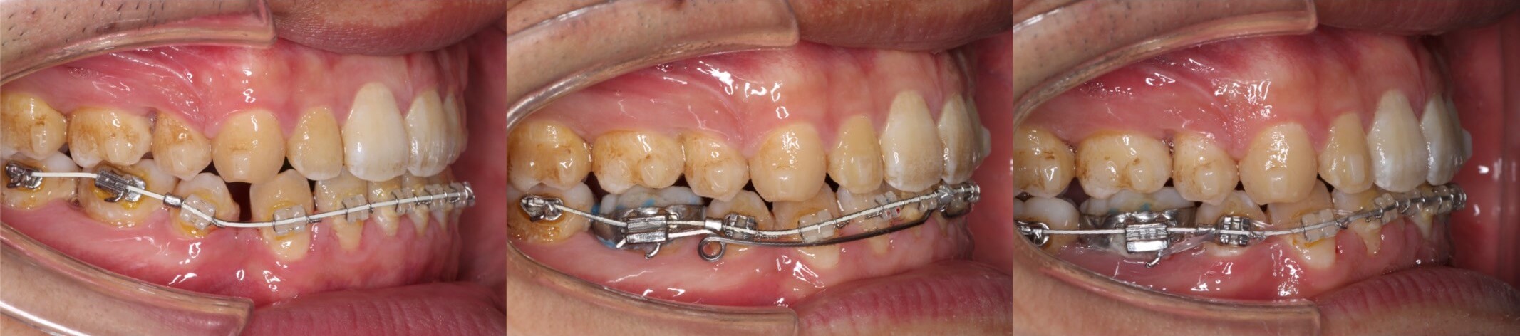 マウスピース型矯正装置のみでのリカバリーは困難と判断し、重度の臼歯傾斜が発生している下の歯列のみ唇側矯正装置でリカバリーを行いました。途中ワイヤーを2本使用することで、歯にモーメントを発生させ、無事ボーイングエフェクトが解消しました。リカバリーにかかった治療期間1年3か月と長期にわたりました。