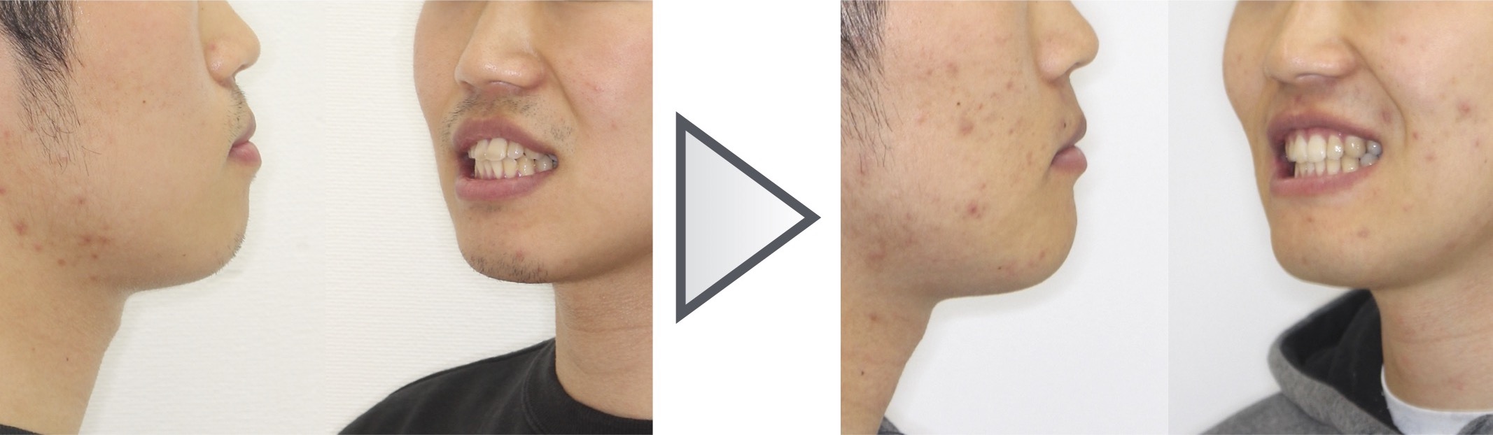 前歯の後方移動を行うと、一般的に上の歯並びは外側に開き拡大する方向に、下の歯並びは内側に傾斜し縮小する方向に向かいます。