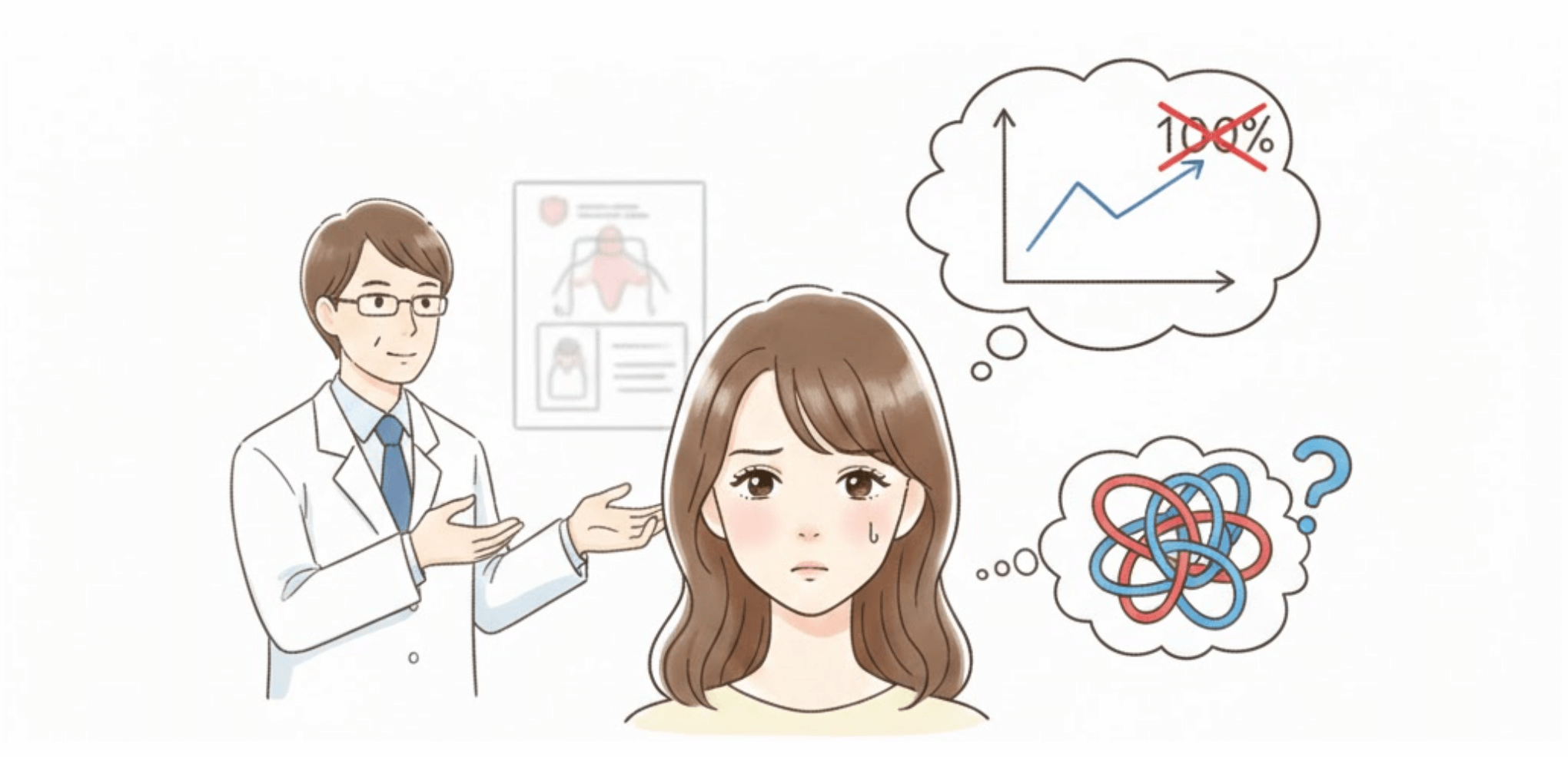 私たちの医院では、このような特殊な治療を検討される患者さんには、必ず「この治療の成功率は100%ではない」とお伝えしています。この説明を聞いて、「この先生は技術が不足しているのではないか」と感じられる方もいらっしゃいます。それは自然な反応だと思います。しかし、これは決して私たちの技術が未熟だという意味ではありません。