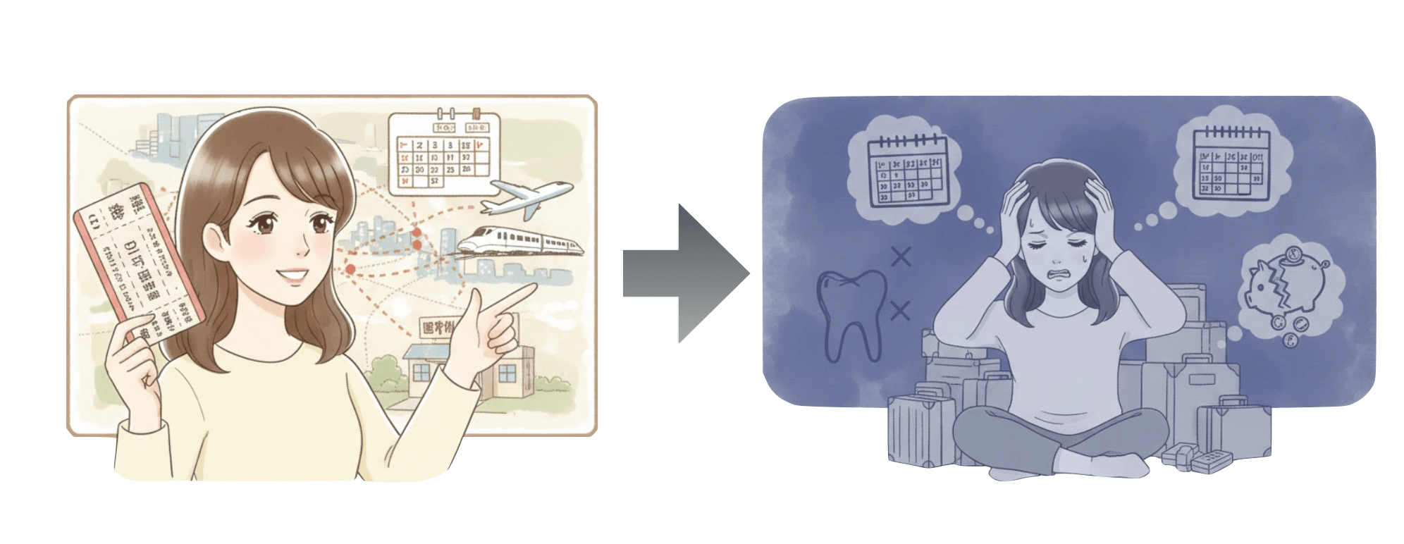しかし、矯正治療は短期間で終わるものではありません。一般的に2年から3年、症例によってはそれ以上の期間を要します。その間、月に1回程度の通院が必要です。遠方通院は、当初は問題なくても、長期間継続するとなると様々な困難が生じる可能性があります。転居、仕事の都合、家庭の事情、体調の変化など、生活環境は数年の間に変わることがあります。特に若い方であれば、就職、転職、結婚、出産など、ライフイベントが重なることも珍しくありません。また、単純に時間的・経済的負担が大きくなり、継続が難しくなることもあります。