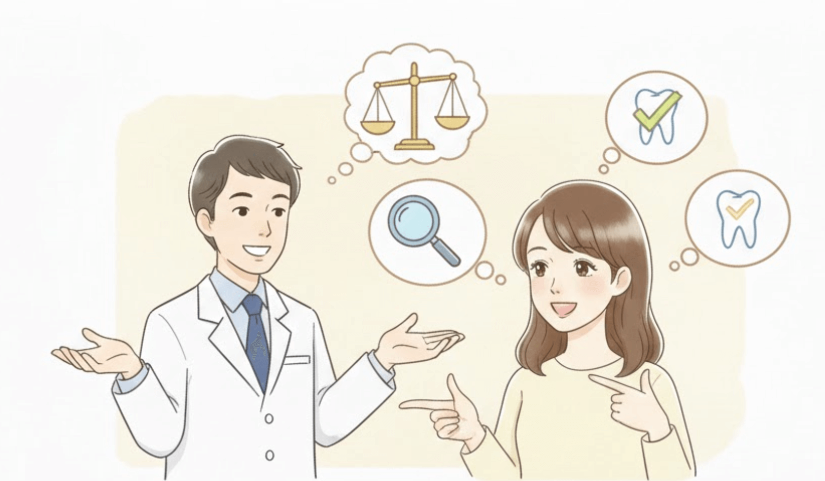 患者さんの中には、何軒もの医院で相談を重ね、自分の希望する治療法を実施してくれる医院を探し続ける方もいらっしゃいます。その熱心さや、ご自身の治療に真剣に向き合う姿勢には敬意を表します。しかし、医院を探し続ける過程で、かえって混乱が深まってしまうこともあります。ある医院では「可能です」と言われ、別の医院では「難しいです」と言われる。この違いは何なのか、患者さんは判断に迷われます。