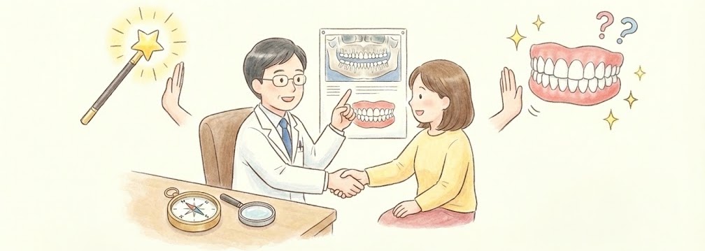 「魔法のような治療法」を探すよりも、ご自身の状態を正確に診断し、適切な治療法を提案してくれる信頼できる矯正医を見つけることが、結果として最も満足度の高い治療につながります。派手な宣伝や、完璧な症例写真だけに惑わされず、医師との対話の中で信頼関係を築けるかどうかを大切にしてください。矯正治療は、医師と患者さんが共に歩む長い道のりです。治療期間中には、予想外のことも起こるかもしれません。その時に、お互いに信頼し、率直に話し合える関係があれば、困難も乗り越えられます。リスクも含めて率直に話し合える関係を築けることが、成功への第一歩だと私は考えています。