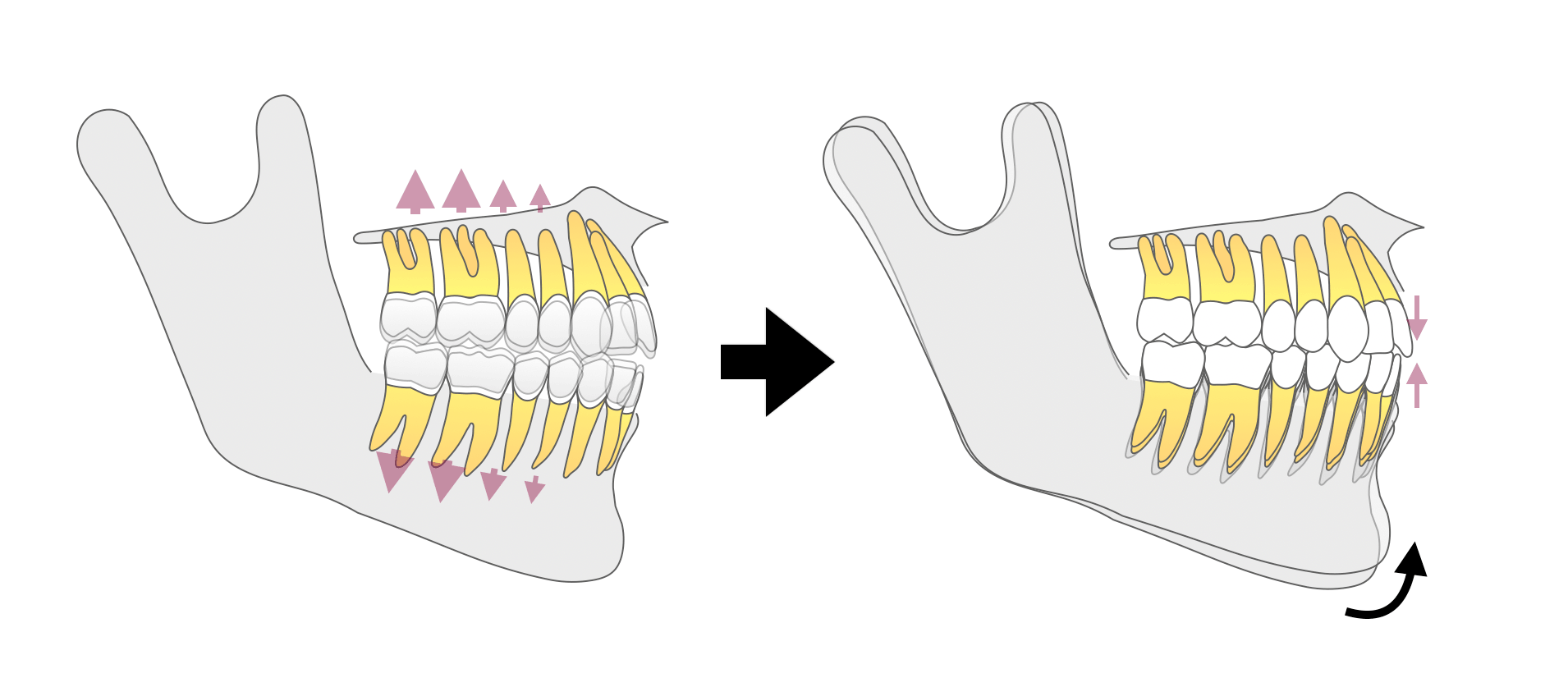 <奥歯が圧下することであごが閉じやすくなる>