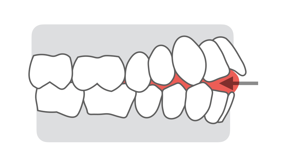 <前開きの前歯を倒しこむイメージ>