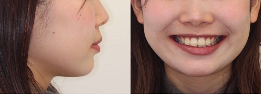 歯並びの見た目はあまり悪くはないのですが、口元のの突出の改善を希望されていました患者さんです。上下顎抜歯を併用して矯正治療を行いました。ゆっくりとお顔が変化するのを楽しんで治療を受けてくれていました