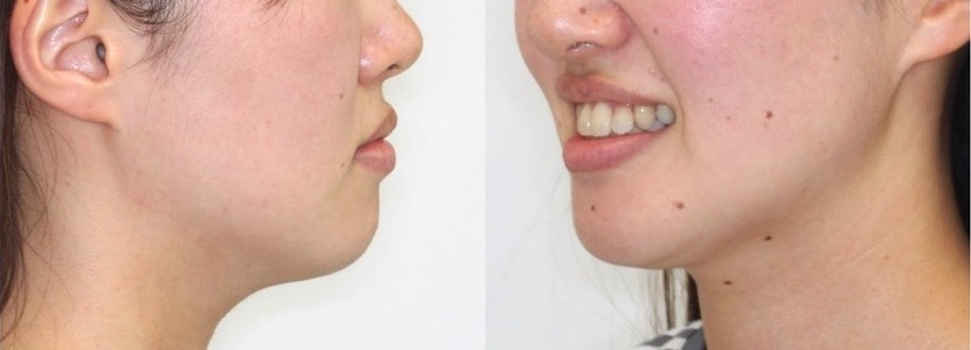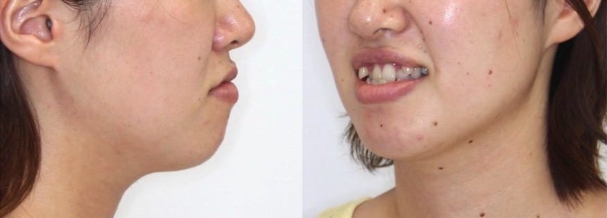 下小臼歯のみ抜歯し、その空隙を利用して下の前歯を後方移動させます。主に下あご大きく受け口の度合いが方が適応になります。あご自体のサイズを変化させることはできなためあまり選択されません。