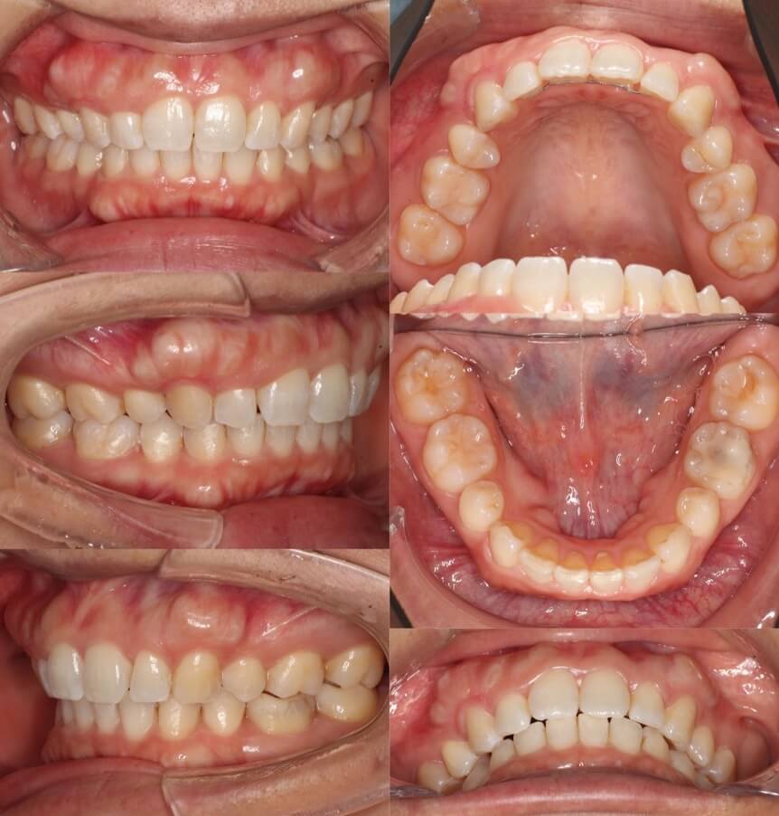 症状:過蓋咬合・右5番シザーズバイト・下顎叢生