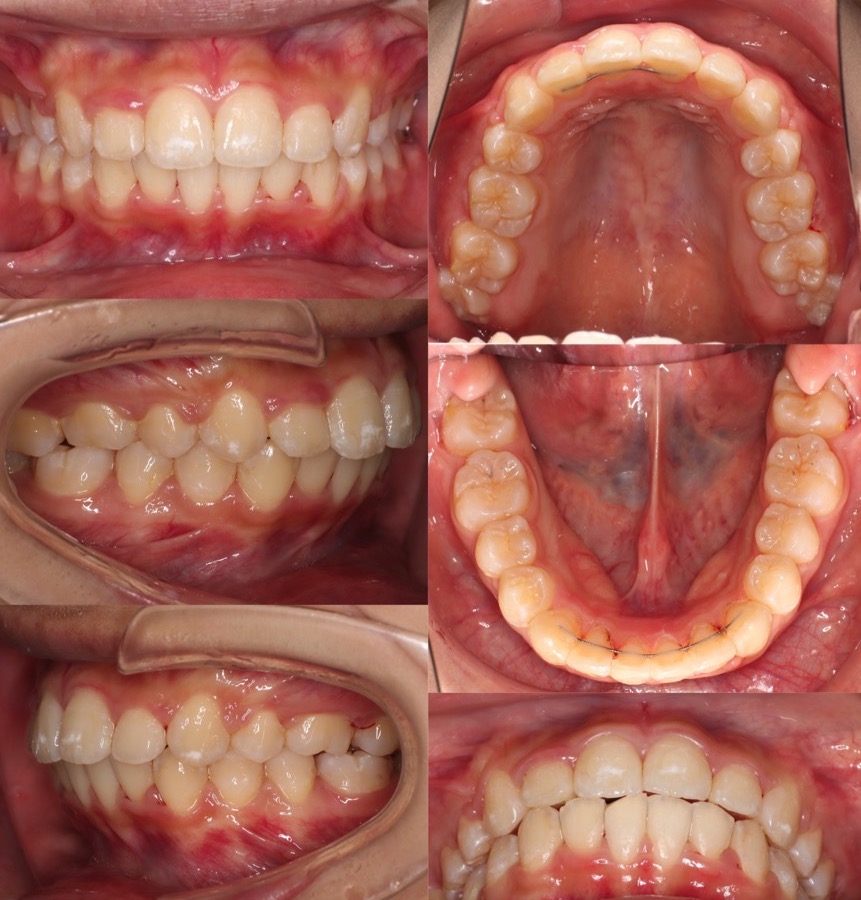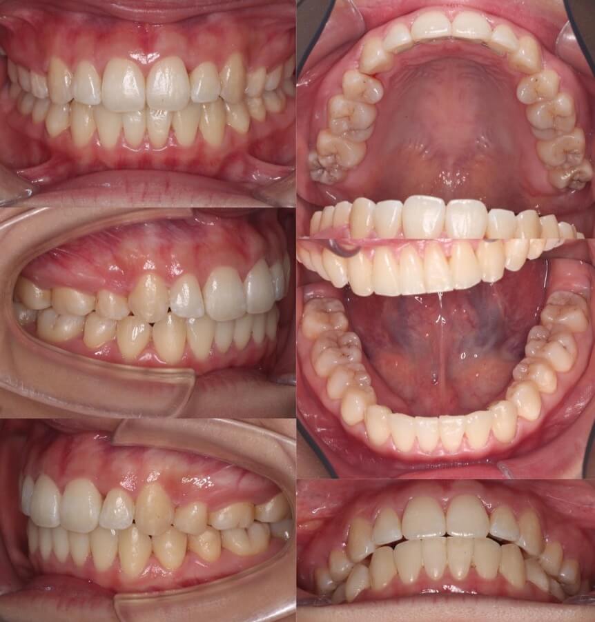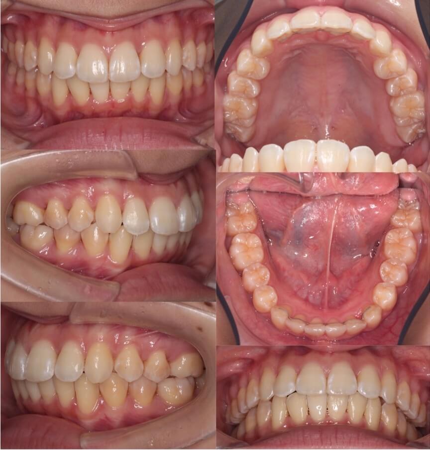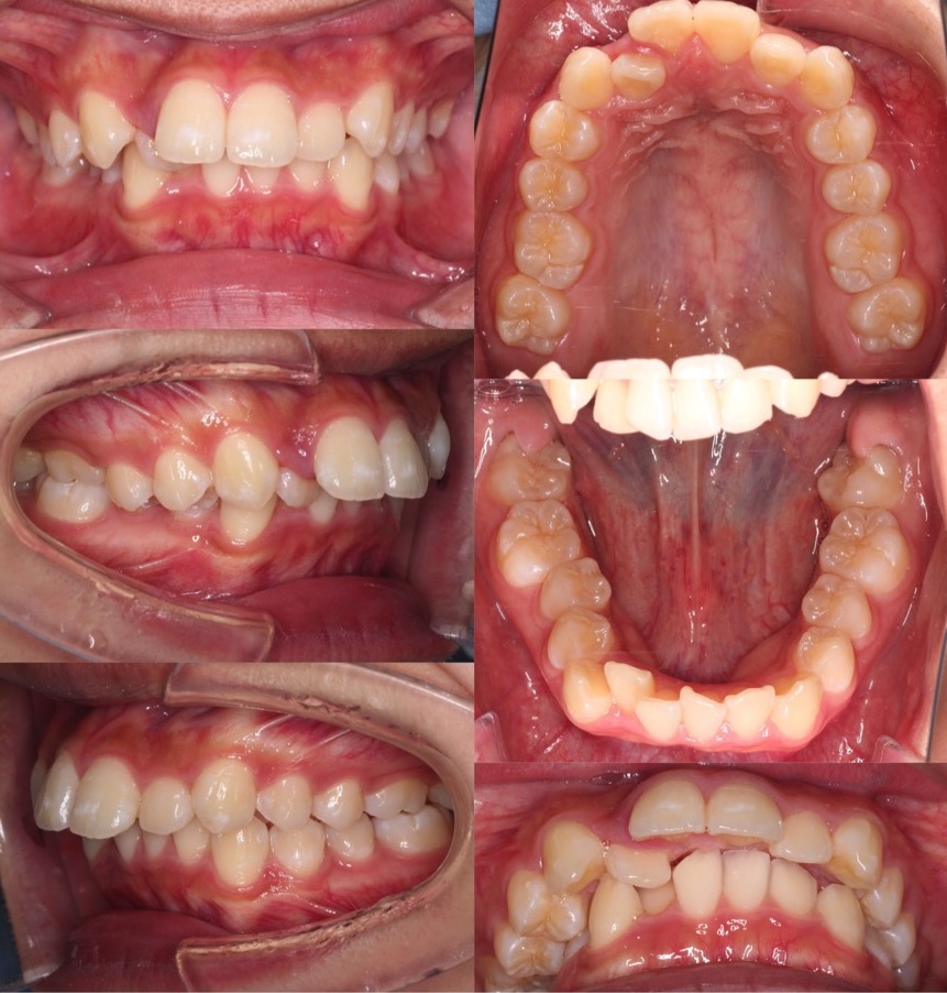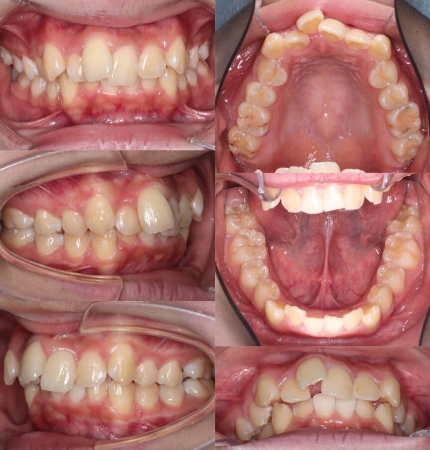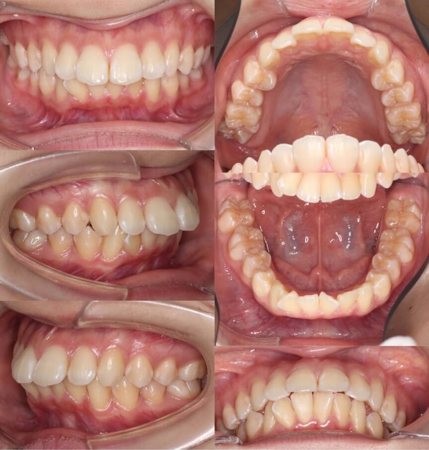 症状:上顎前歯唇側傾斜・叢生・過蓋咬合