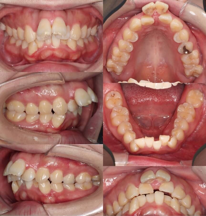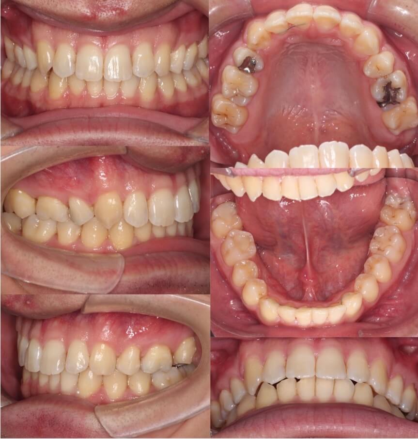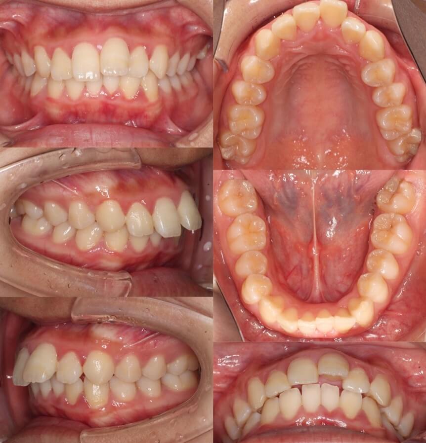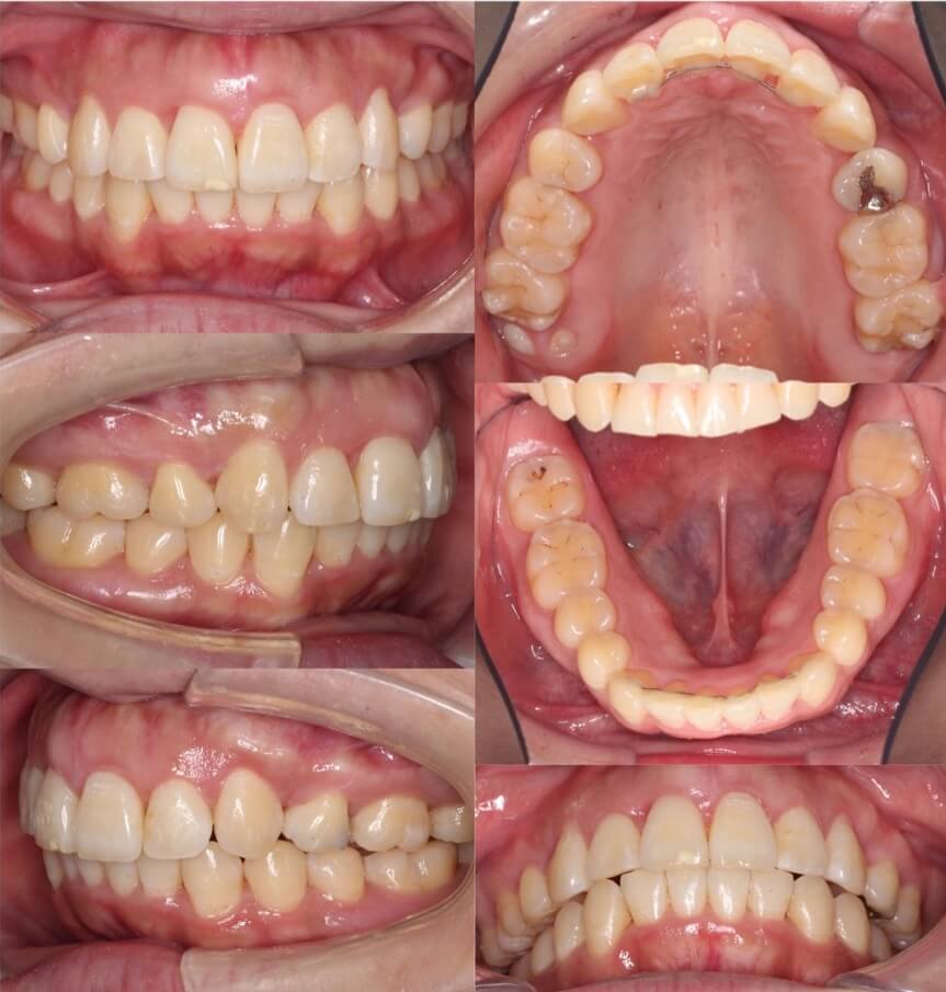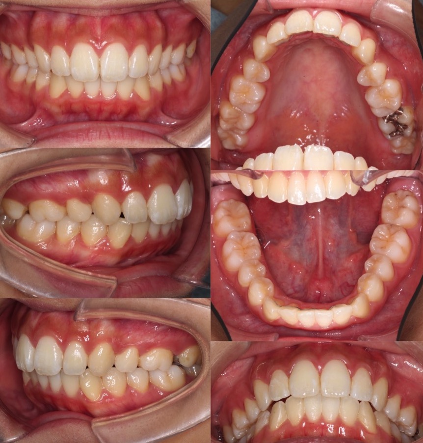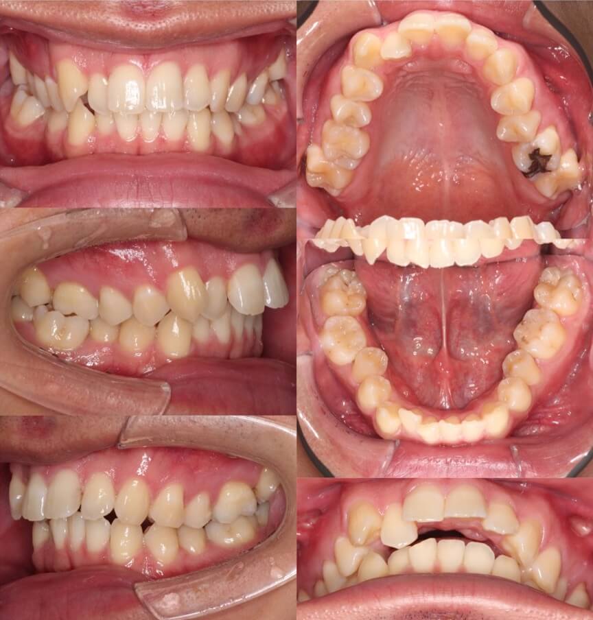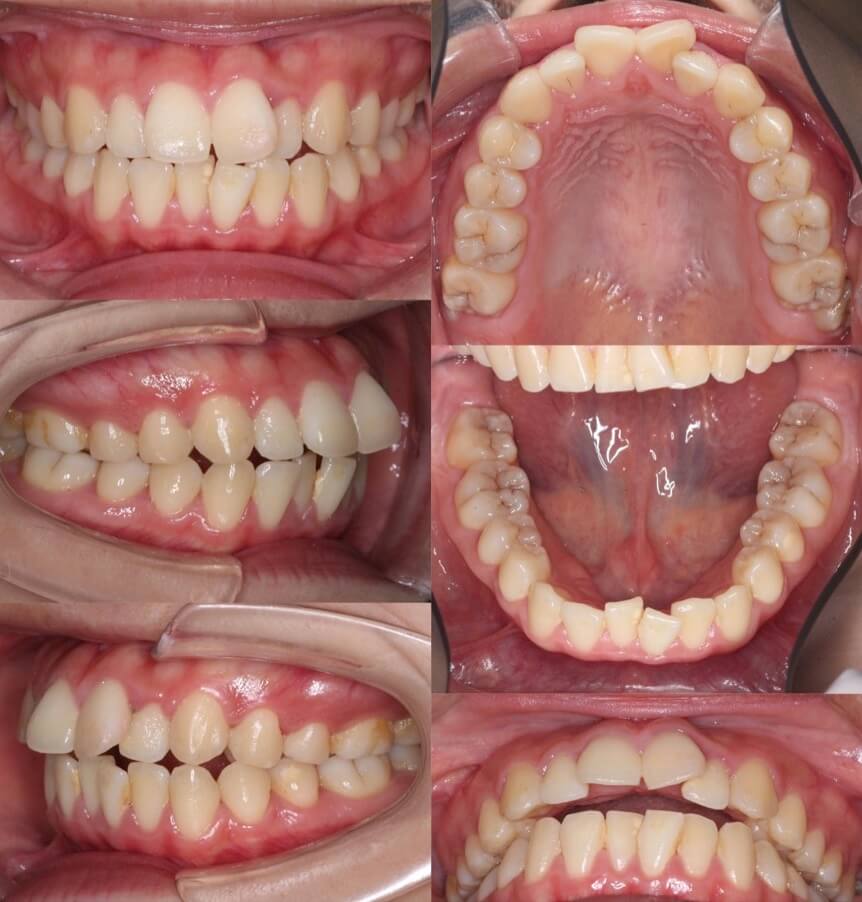 症状:上顎前歯唇側傾斜・叢生・過蓋咬合