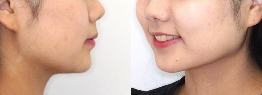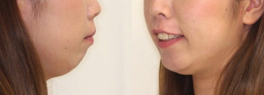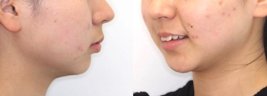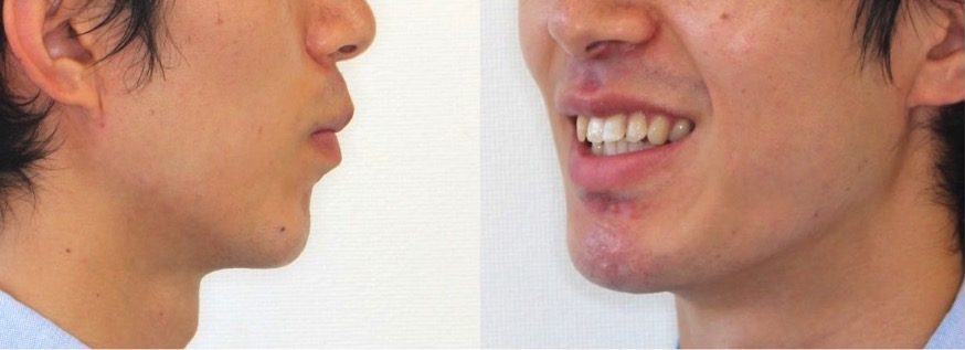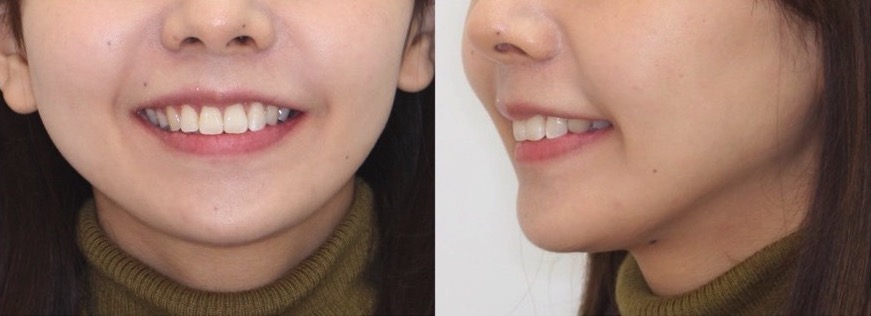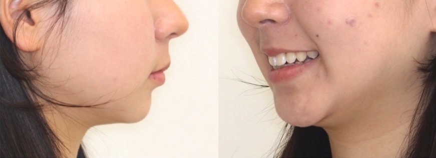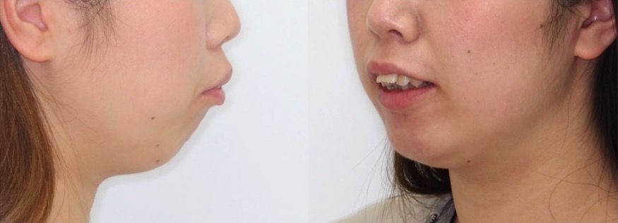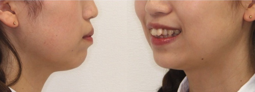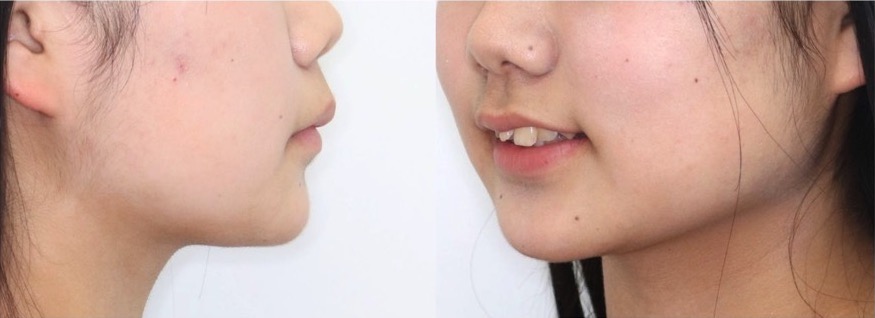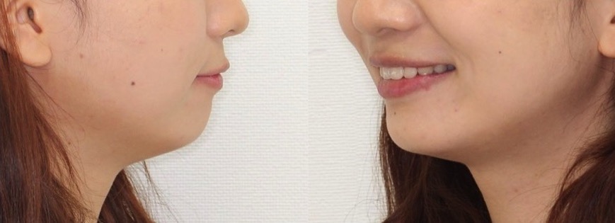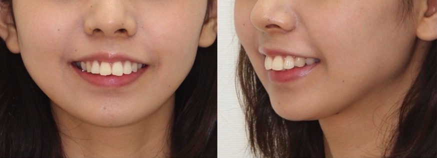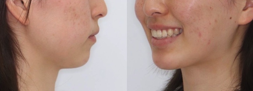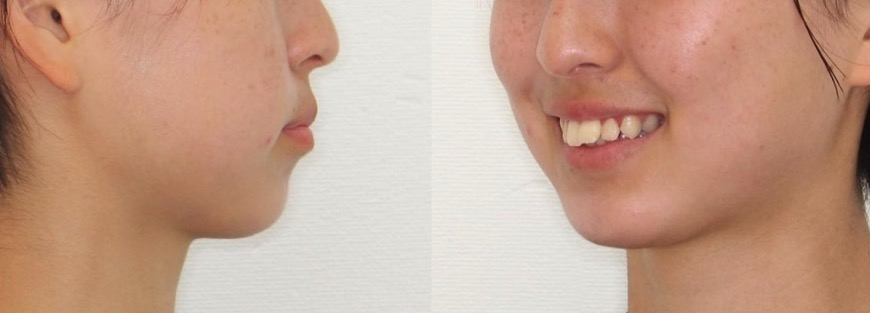 女子の場合は15歳くらいまでは、成長を利用した矯正治療が可能です。成人の方では、抜歯になるような症状でも非抜歯で矯正治療を行う事が可能です。下顎の前方への骨格成長もあり、口元が突出が減り横顔も変化させる事ができました。